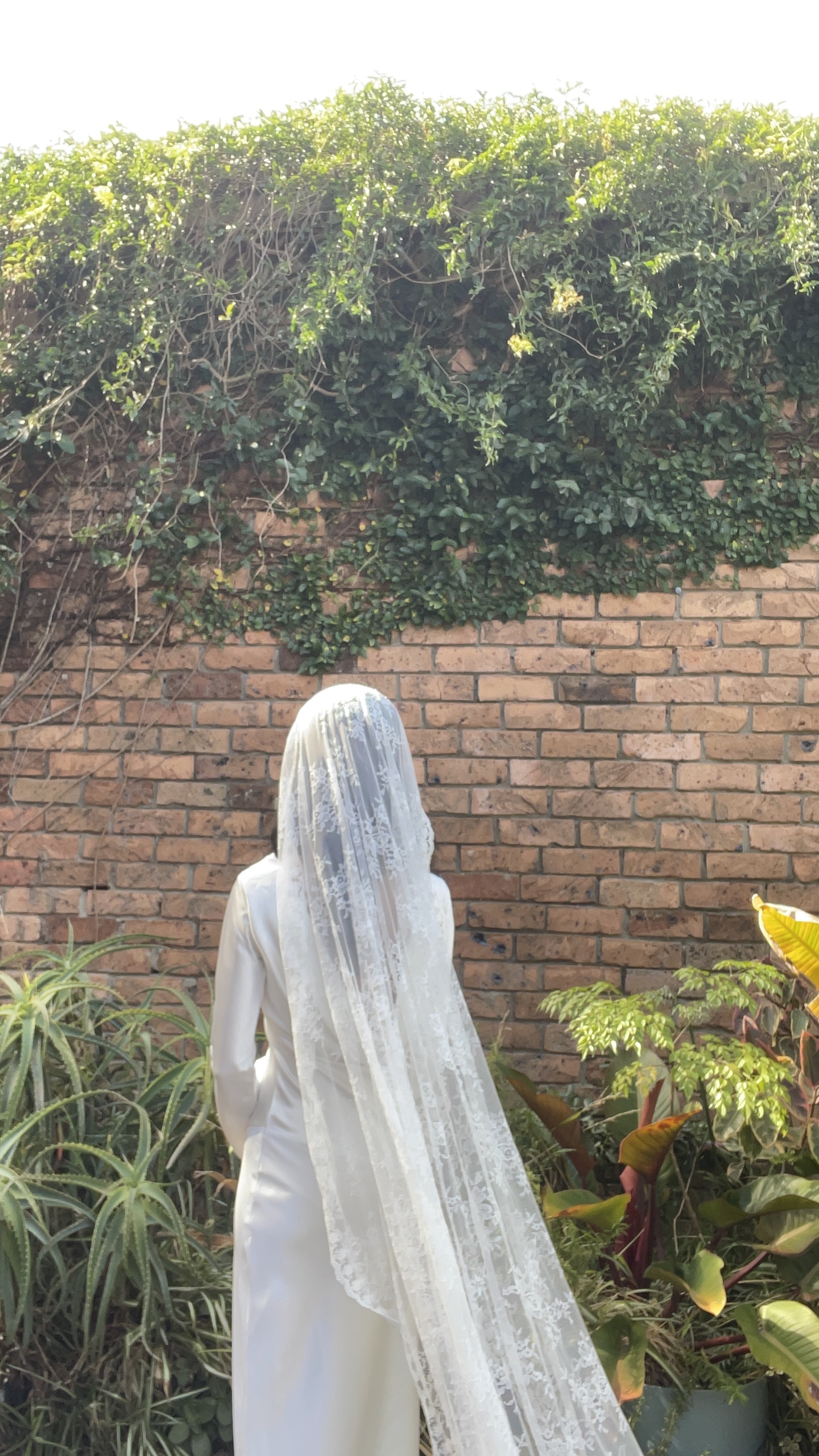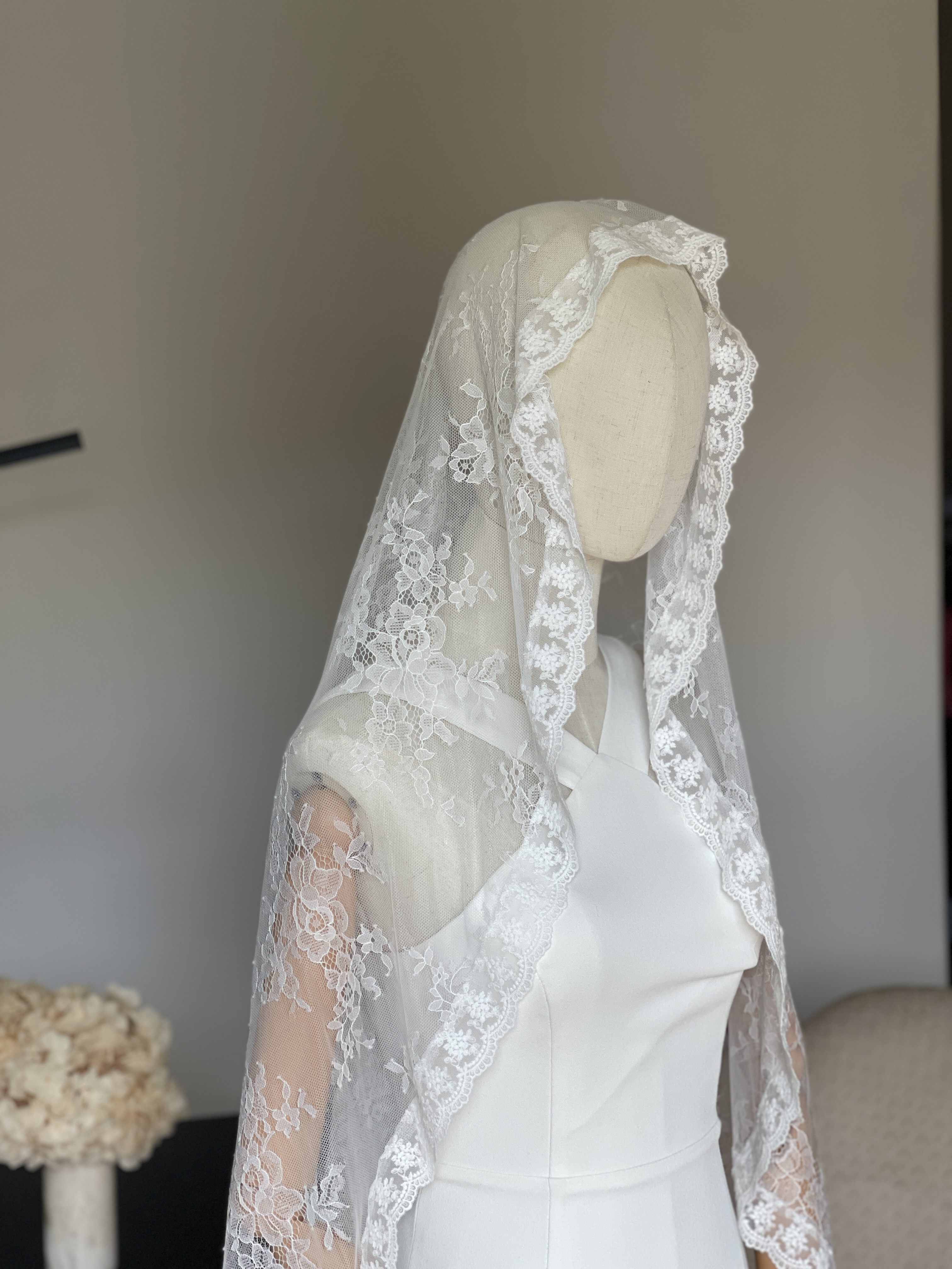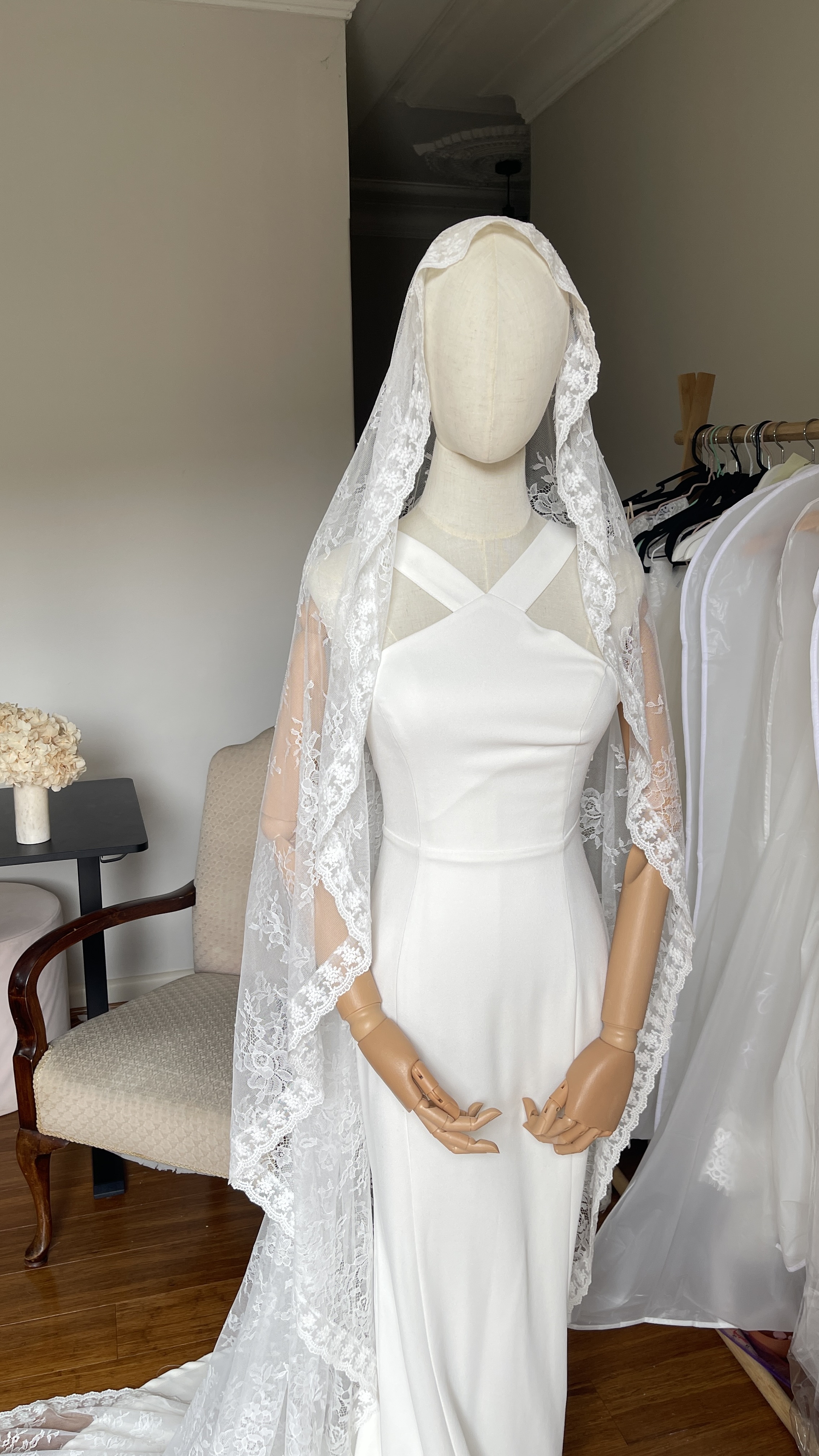 Romantic and richly detailed, this full lace veil makes a statement with every step. A dramatic yet timeless piece for the bride who loves classic beauty with a touch of grandeur.