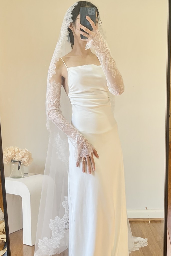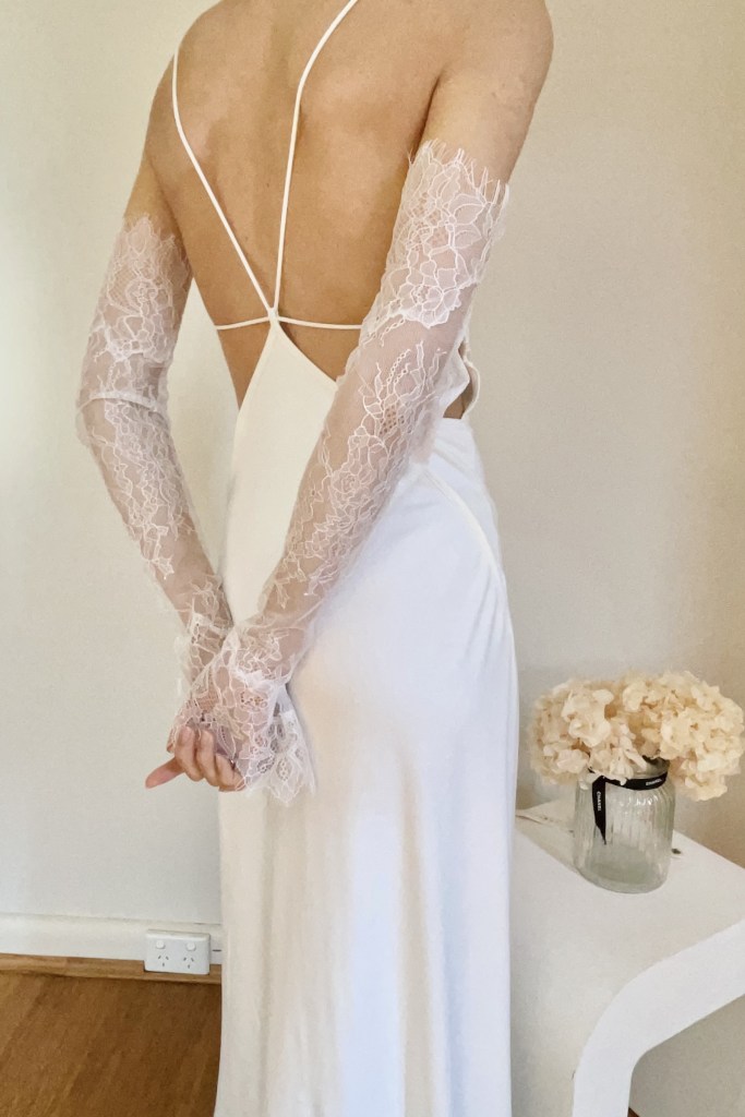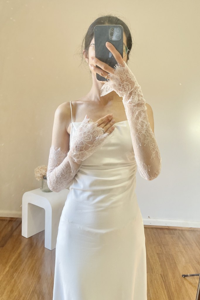 - Chantilly lace, eyelash lace both sides (top and bottom)