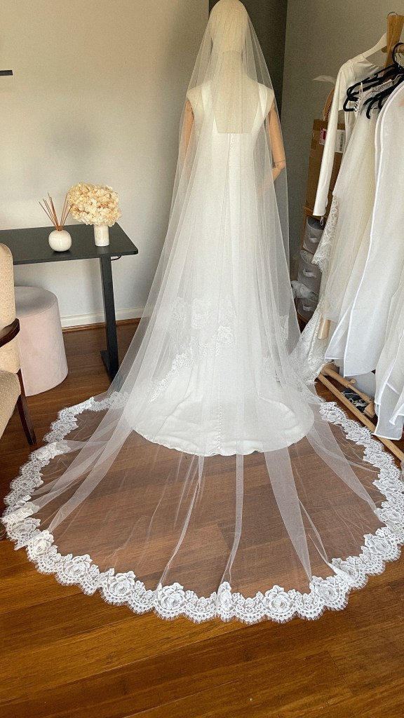 - Cathedral 118″/300cm: single layer $550, double layer $650 (with blusher to cover your face)