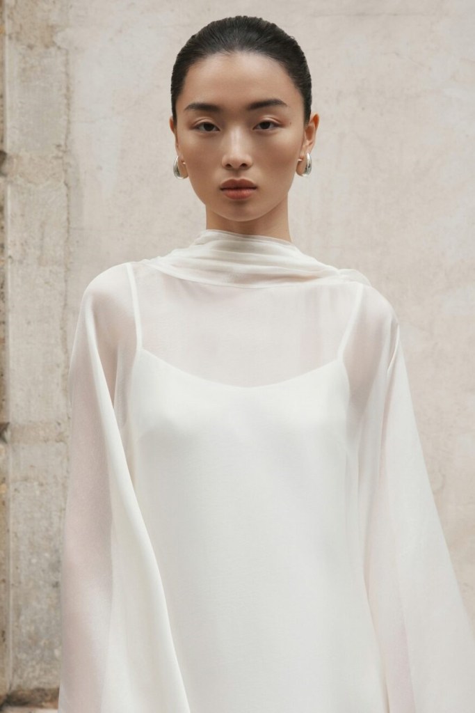 - Thin silk overlay on a light cream silk base