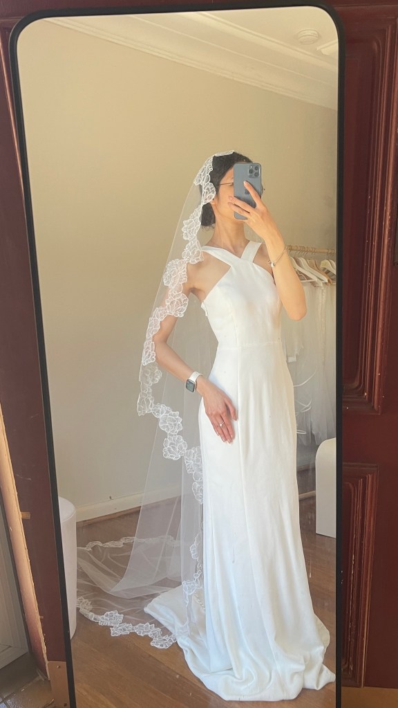 - Chapel 90″/228cm: single layer $360, double layer $460(with blusher to cover your face)