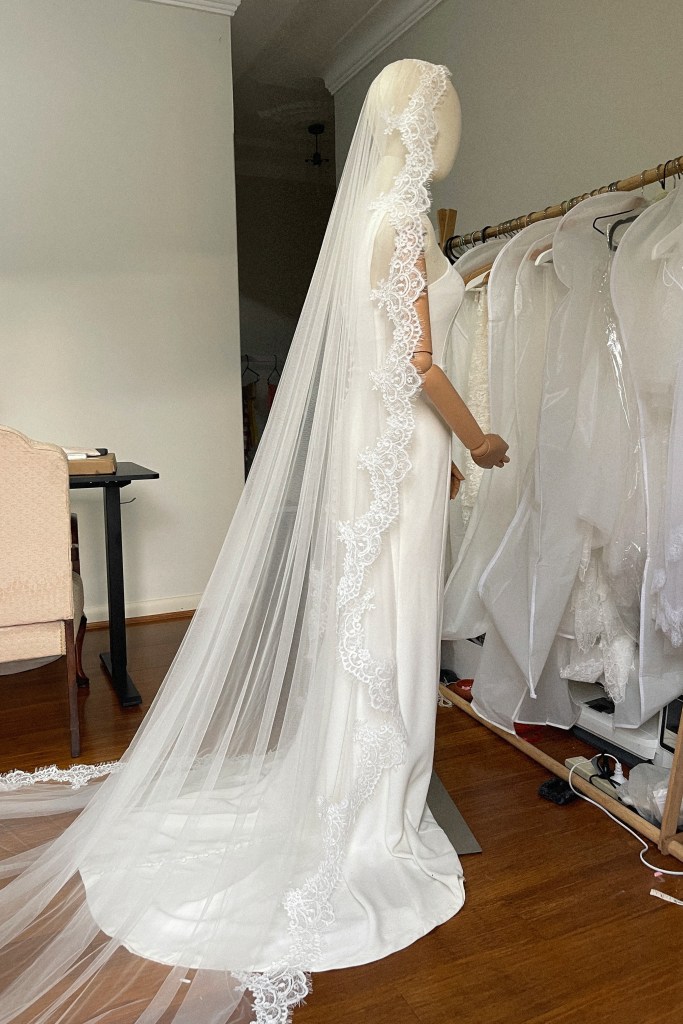 - Chapel 90″/228cm: single layer $375, double layer $475 (with blusher to cover your face)